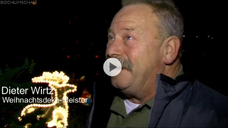Dieter Wirtz, Weihnachtsdeko-Meister:"Das glaub ich nicht, aber ich hatte schon mal etwas von der Stadt Bochum mitbekommen, da hieß es «Leute holt die Lampen raus», das war ein sehr großes Foto von den Stadtwerken Bochum, da war ich drauf, also das war mein Haus, da war ich eigentlich sehr stolz drauf das die Stadt Bochum mich da gewählt hat um die Beleuchtung rauszuholen, das war sehr gut."